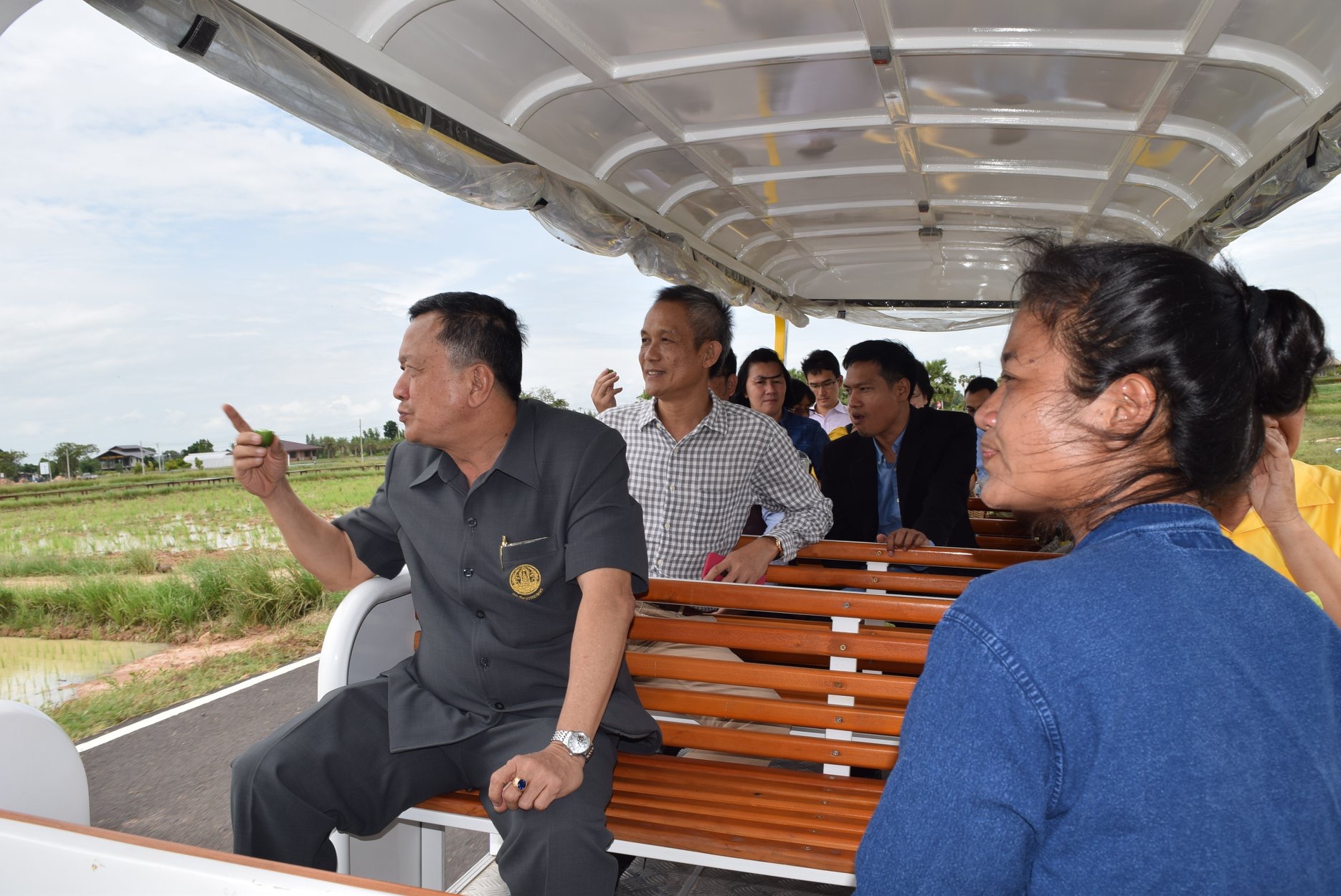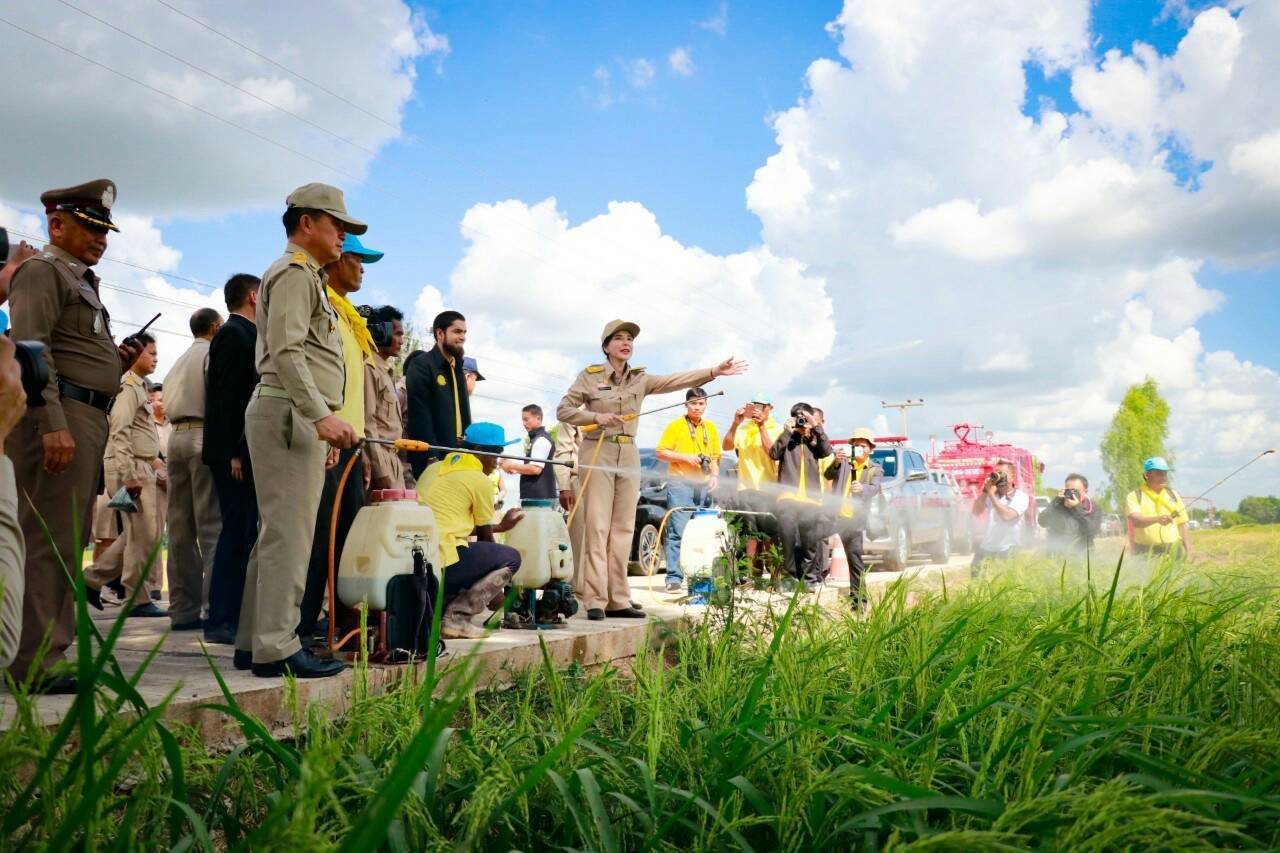 จากนั้นได้ลงพื้นที่ตรวจแปลงนาข้าวและให้กำลังใจเกษตรกรที่ได้รับความเสียหายที่บ้านอู่โลก ต.อู่โลก อ.ลำดวน และบ้านหนองเสือ ต.ศรีสุข อ.สำโรงทาบ จ.สุรินทร์
