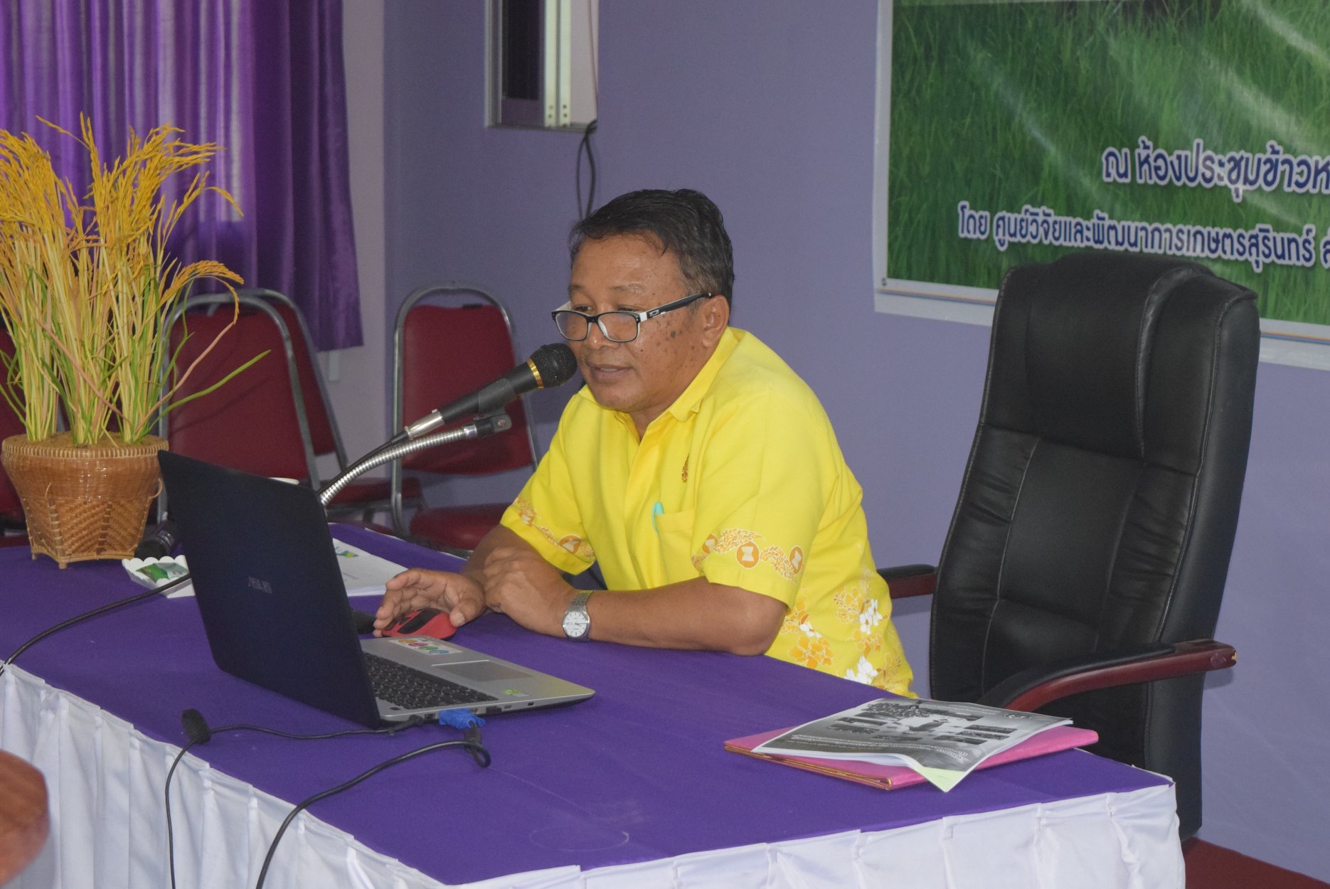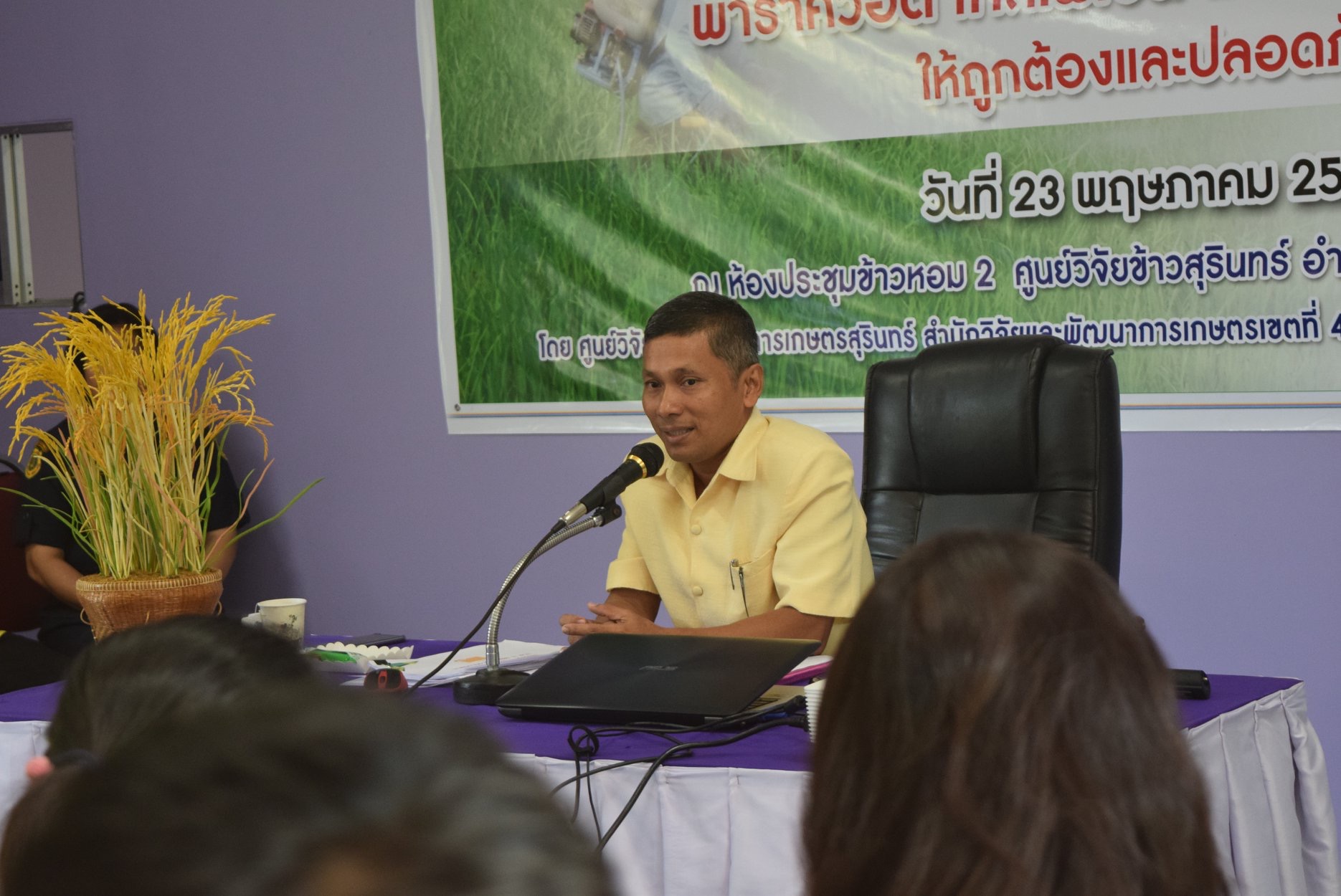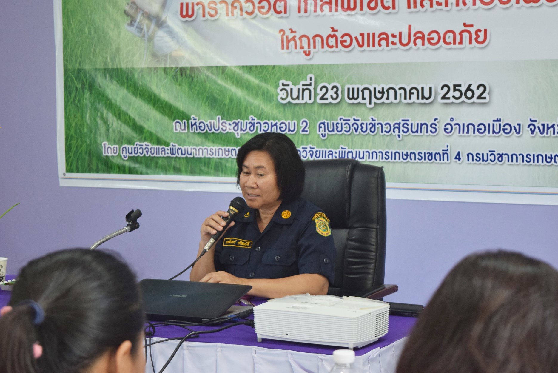 วันที่ 23 พฤษภาคม 2562 ศูนย์วิจัยและพัฒนาการเกษตรสุรินทร์ ศูนย์วิจัยและพัฒนาการเกษตรบุรีรัมย์ และศูนย์พัฒนาการเกษตรภูสิงห์ อันเนื่องมาจากพระราชดำริ สำนักวิจัยและพัฒนาการเกษตรเขตที่ 4 กรมวิชาการเกษตร ได้ร่วมจัดฝึกอบรม หลักสูตร “อบรมวิทยากร (ครู ข) เรื่องการใช้วัตถุอันตรายพาราควอต ไกลโฟเซต และคลอร์ไพริฟอส ให้ถูกต้องและปลอดภัย” ณ ห้องประชุมข้าวหอม 2 ศูนย์วิจัยข้าวสุรินทร์ อำเภอเมืองสุรินทร์ จังหวัดสุรินทร์ ให้กับเจ้าหน้าที่กรมส่งเสริมการเกษตร การยางแห่งประเทศไทย และสำนักงานคณะกรรมการอ้อยและน้ำตาลทราย วัตถุประสงค์เพื่อให้สามารถนำความรู้ที่ได้ ไปอบรมถ่ายทอดความรู้เรื่องการใช้สารวัตถุอันตรายทั้ง 3 ชนิด แก่เกษตรกรผู้ใช้ ผู้รับจ้างฉีดพ่น ผู้จำหน่าย และเพิ่มพนักงานเจ้าหน้าที่ในการกำกับดูแลการใช้วัตถุอันตราย โดย นางนวลจันทร์ ศรีสมบัติ ผู้อำนวยการศูนย์วิจัยและพัฒนาการเกษตรสุรินทร์ ได้ให้เกียรติเป็นประธานในพิธีเปิด และ เกษตรและสหกรณ์จังหวัดสุรินทร์ เจ้าหน้าที่จาก สำนักงานเกษตรจังหวัดสุรินทร์ ประมงจังหวัดสุรินทร์ ศูนย์เมล็ดพันธุ์ข้าวสุรินทร์ สำนักงานการปฏิรูปที่ดินจังหวัดสุรินทร์ สถานีพัฒนาที่ดินสุรินทร์ สำนักงานสหกรณ์จังหวัดสุรินทร์ ได้ร่วมในพิธีเปิดการฝึกอบรมดังกล่าว โดยมีผู้เข้ารับการฝึกอบรมจำนวน 88 ราย