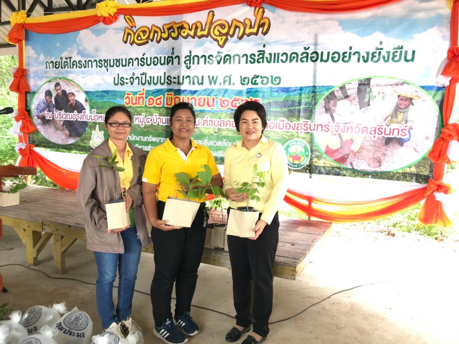 วันที่ 18 มิถุนายน 2562 นางนวลจันทร์ ศรีสมบัติ ผู้อำนวยการศูนย์วิจัยและพัฒนาการเกษตรสุรินทร์ ได้มอบหมายให้ นางสาวจิรัสชญาพร รณเรืองฤทธิ์ นักวิชาการเกษตรชำนาญการ และเจ้าหน้าที่ร่วมกิจกรรมปลูกป่าเพื่อเพิ่มพื้นที่สีเขียวภายใต้โครงการชุมชนคาร์บอนต่ำ สู่การจัดการสิ่งแวดล้อมอย่างยั่งยืน ประจำปีงบประมาณ พ.ศ. 2562 สำนักงานทรัพยากรธรรมชาติและสิ่งแวดล้อมจังหวัดสุรินทร์ ร่วมกับองค์การบริหารส่วนตำบลคอโค ณ บริเวณอ่างเก็บน้ำหนองตามุม อ.เมือง จ.สุรินทร์
